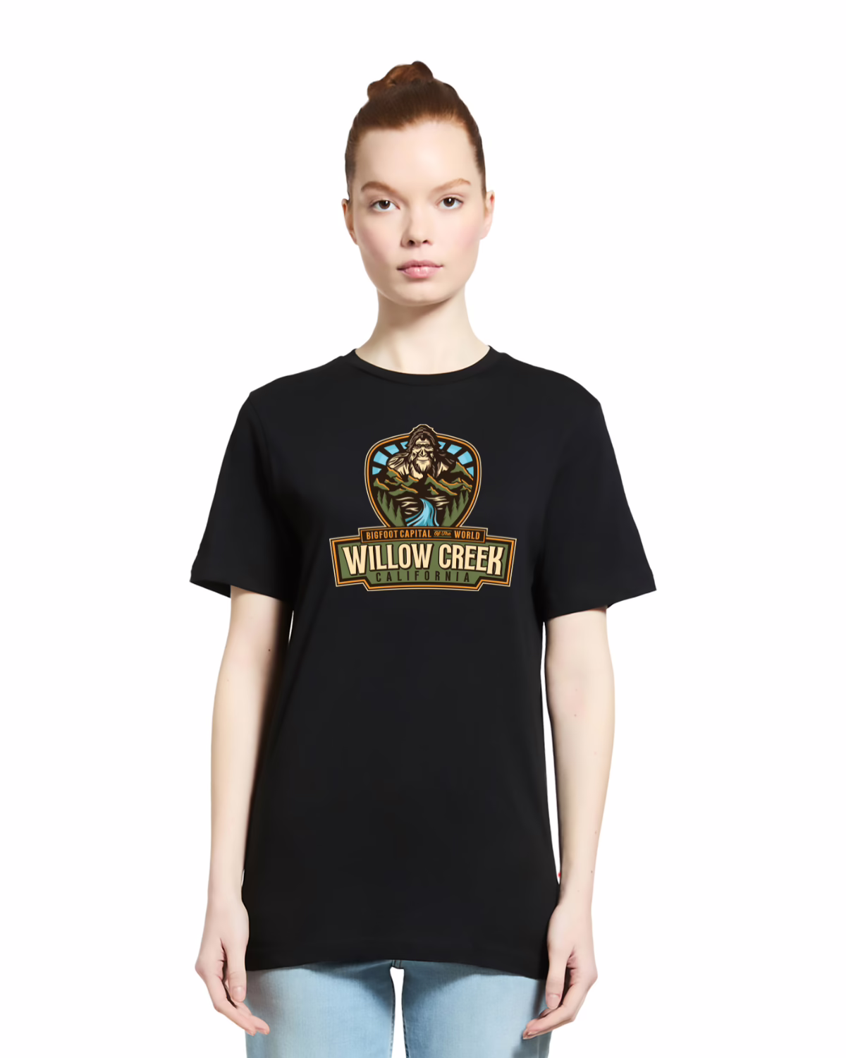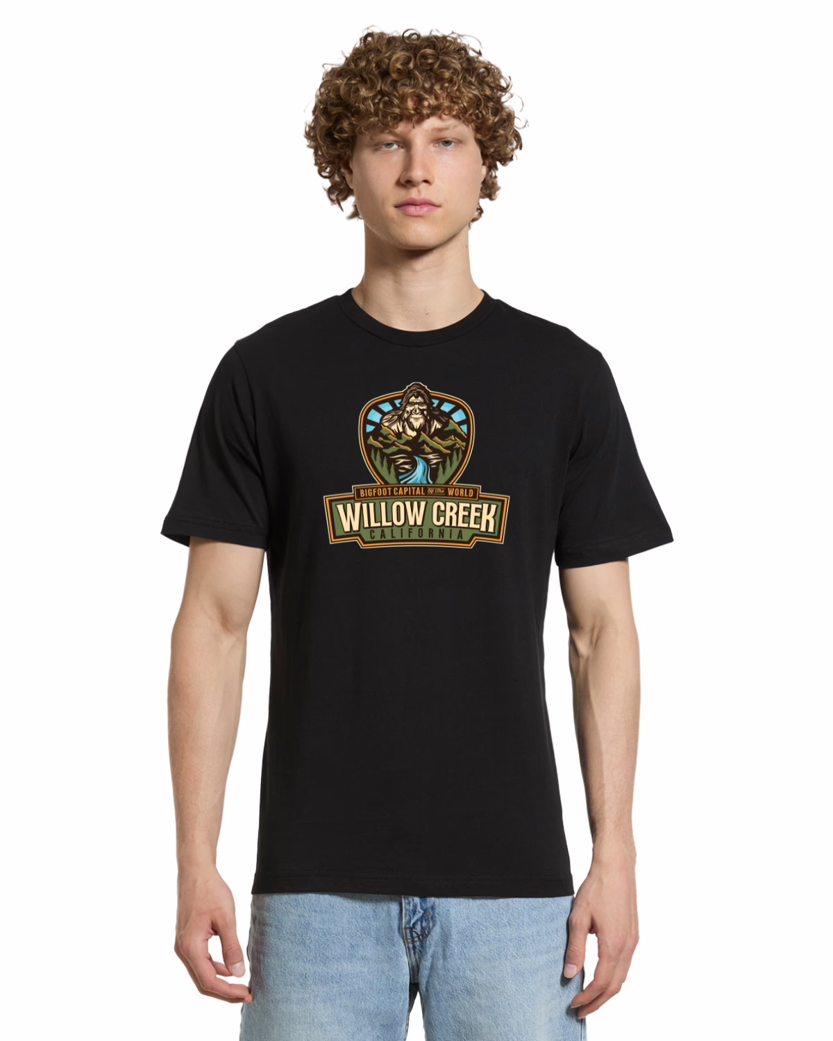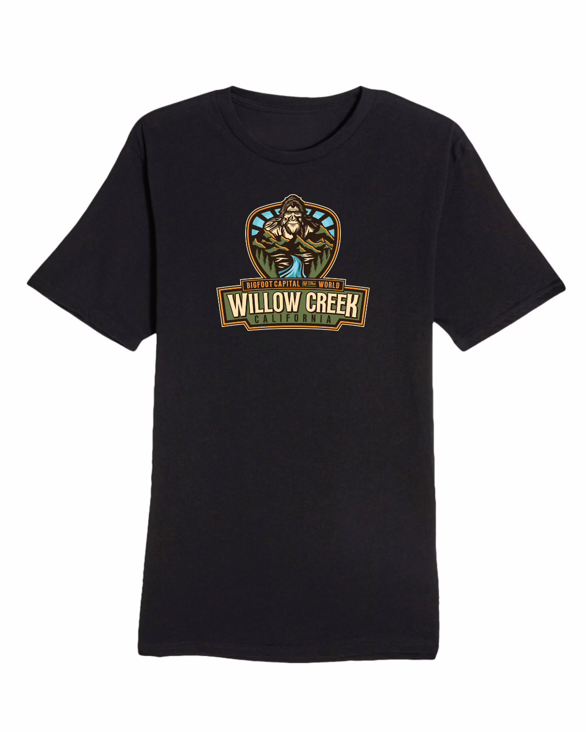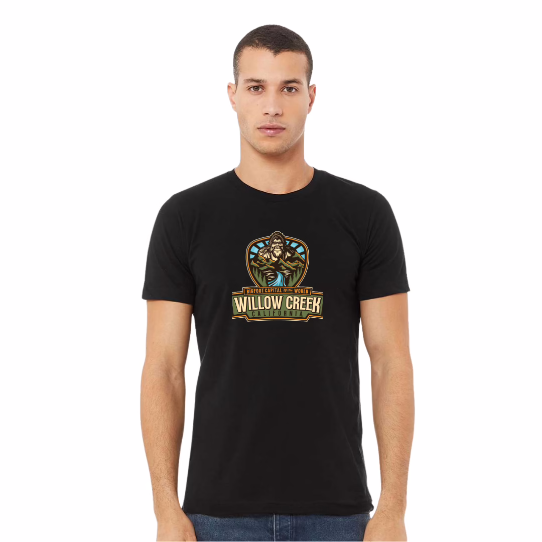 Show your Willow Creek pride with a tee that’s as legendary as our most famous resident. This soft black shirt features our classic Bigfoot Capital of the World™ design – bold enough for believers, subtle enough for those who just want to keep an eye on the treeline.