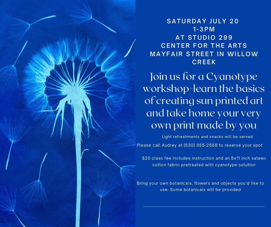 Join us for a Cyanotype workshop ~ learn the basics of creating sun printed art…
