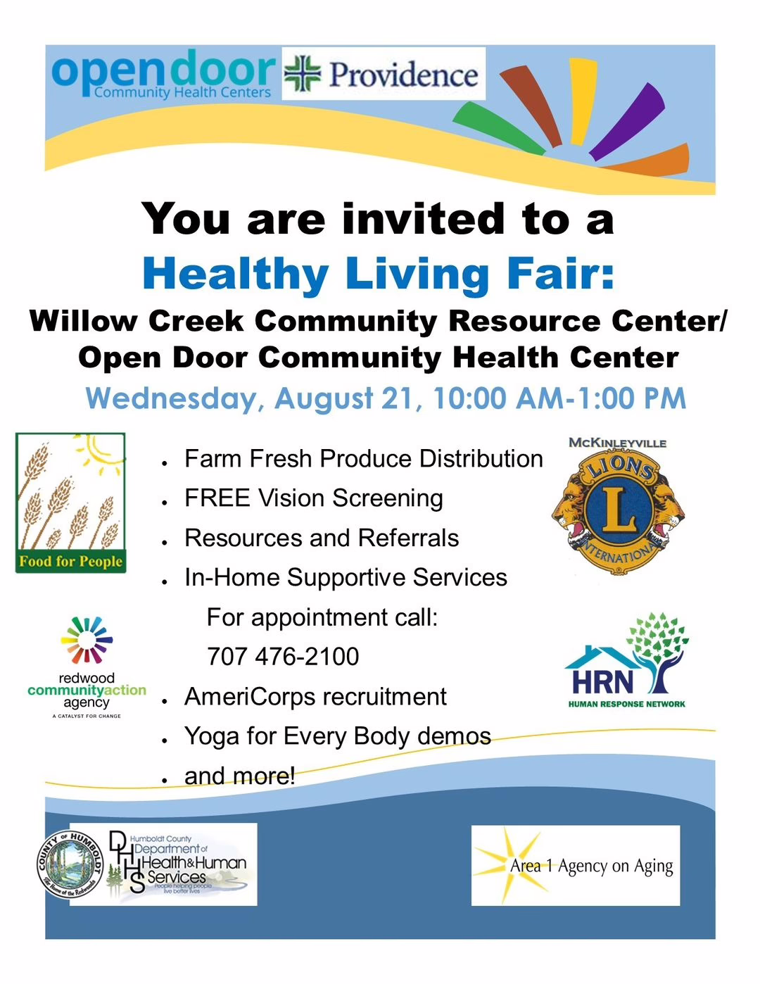 Healthy Living Fair Healthy Living Fair You are invited! Farm Fresh Produce Distribution FREE Vision Screening Resources and REferrals In-Home Support…Willow Creek Chamber of CommerceAugust 6, 2024