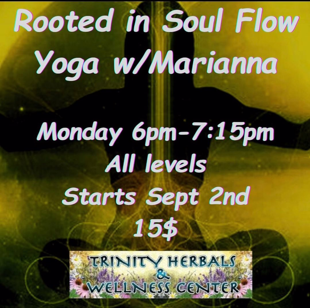 September 2, 2024 @ 6:00 pm Rooted in Soul Flow Yoga w/ Marianna Trinity Herbals & Wellness Center 39025 HWY 299, Willow Creek, CA, United States